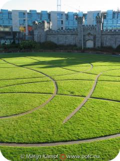 Dublin Castle maze and coach house. The 'Dubhlinn' Gardens where created in 1680. Dublin gets it's name from the sheltered dark pool or harbour that occupied this area from ancient times. Dubh means black in Irish.
